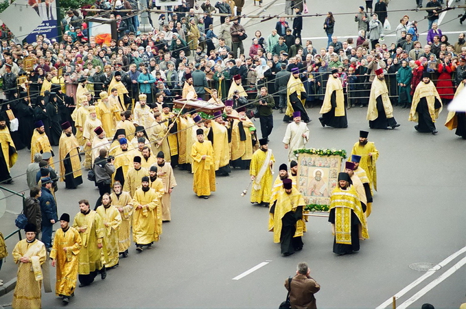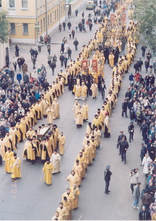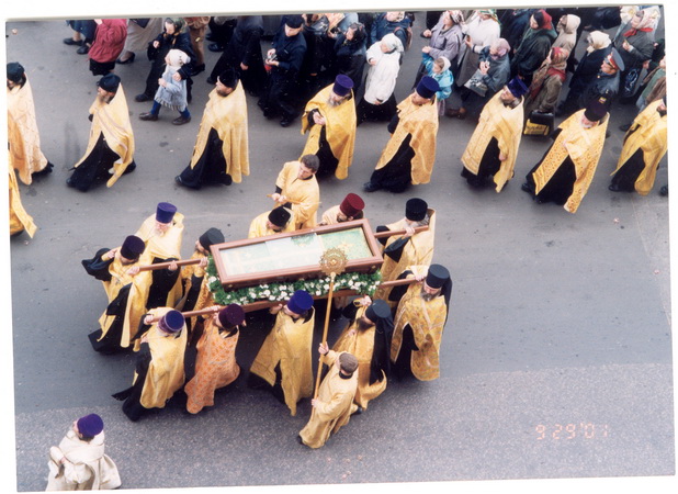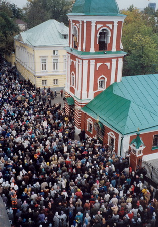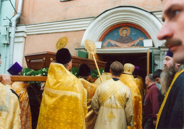 29 сентября 2001 года с особой торжественностью – с преднесением икон и хоругвей многих церквей, при благовесте колоколов и молитвенном пении, многотысячное праздничное шествие сопровождало перенесение честных мощей св. праведного Алексия, пресвитера Московского, из Новоспасского монастыря в храм святителя Николая в Кленниках.