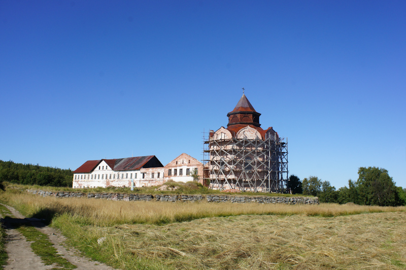 В эти дни на Соловецких островах стояла прекрасная, редкая для этих суровых мест погода, позволившая нам путешествовать по скитам и островам архипелага. Побывали мы у стен Свято-Вознесенского скита на Секирной горе, в бывшем Сергиевом скиту на острове Муксалма, в Андреевском Скиту на Заяцком острове, в Макариевой пустыни.