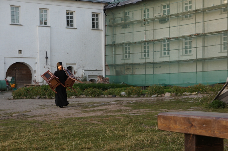 Братия монастыря во главе с наместником, архимандритом Порфирием, очень тепло приняла нашу группу. Дни посещения нами Соловков пришлись на череду главных праздников монастыря: 19 августа – Преображение Господне, престольный праздник главного собора обители, 21 августа – день перенесения мощей преподобных Зосимы, Савватия и Германа Соловецких, 22 августа – день всех Соловецких святых, а 23 августа – день памяти новомучеников и исповедников Соловецких.