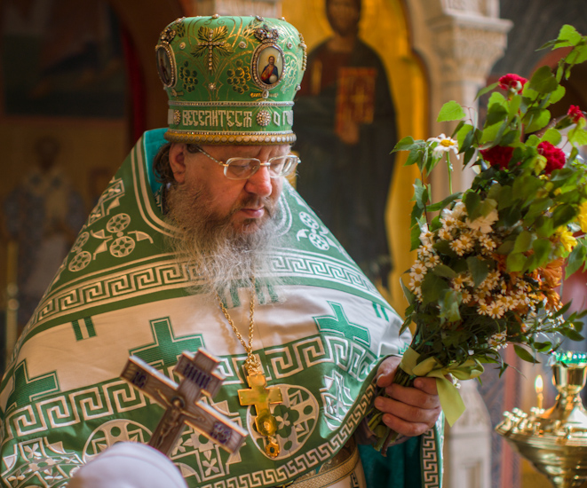 Праздничное богослужение дня Святой Троицы – Божественная Литургия и вечерня с чтением коленопреклоненных молитв. Убранство храма составляют березовые ветви, цветы и приносимое окружающей нас природой разнотравье.