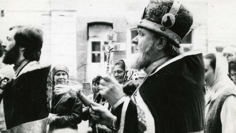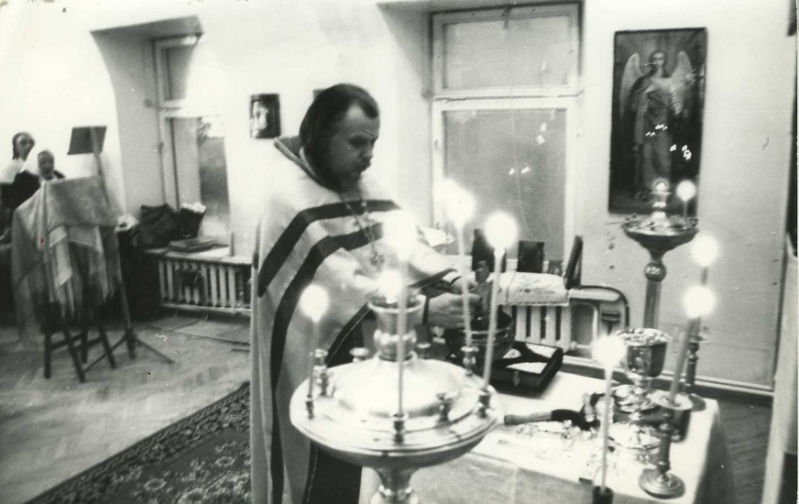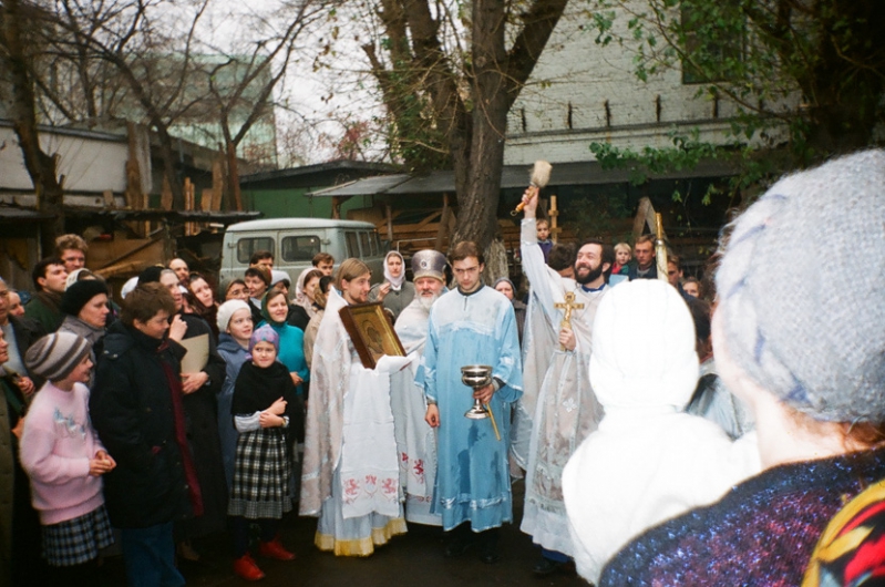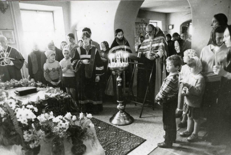 Начало 1990-х, Стоят о. Николай Чернышев, Л. Федянина, С Любимов