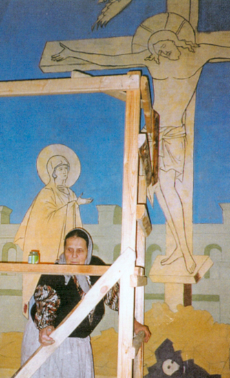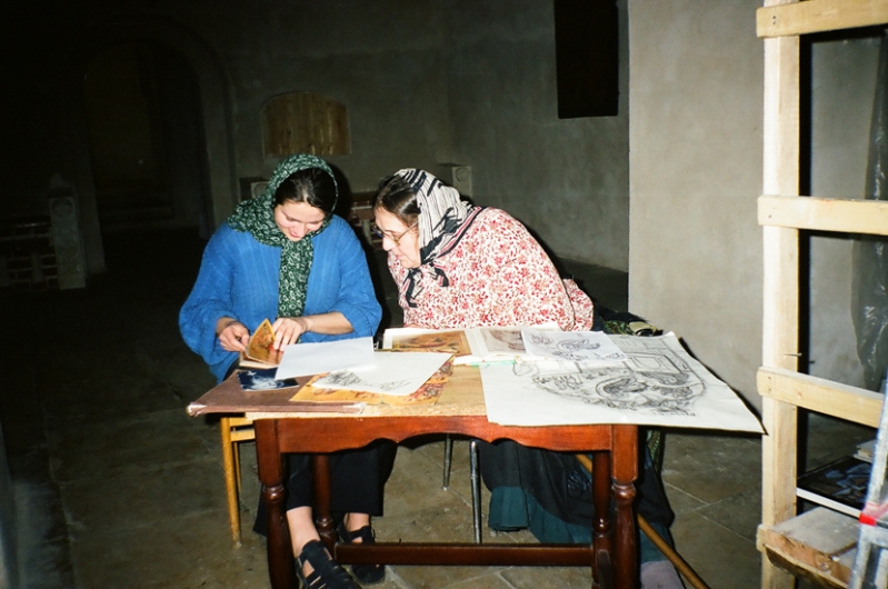 Т.Л.Любимова, Е.А.Чернышева,во дворе храма