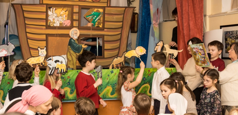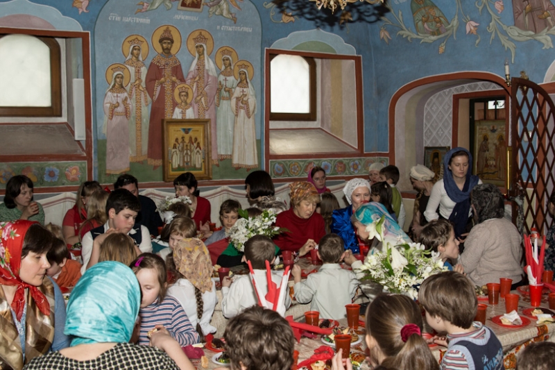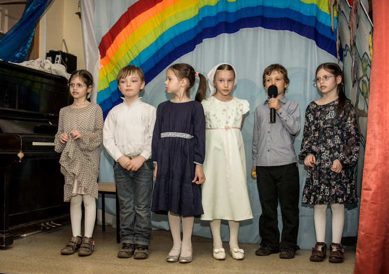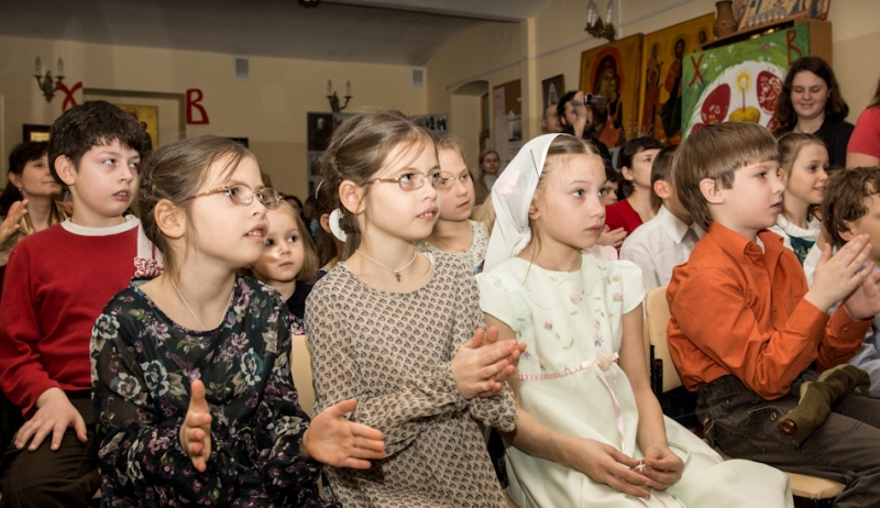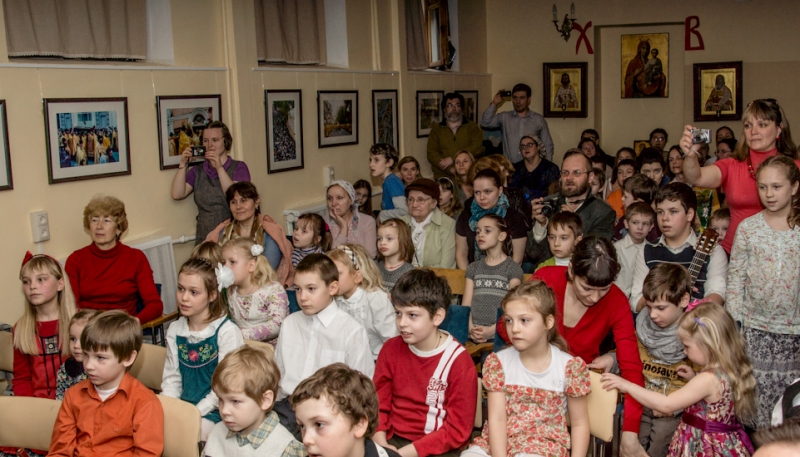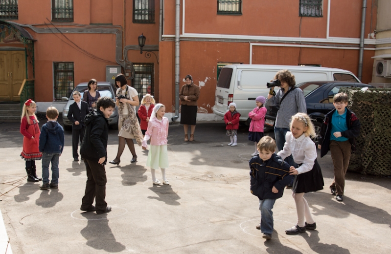 Такие праздники, на которые собираются и дети, и мамы, и папы, и бабушки, и дедушки, и друзья, служат единению прихода, созиданию во всех нас духа любви. Праздник этого года прошел особенно светло и радостно. Перед тем, как занять места в зале, дети и родители весело общались во дворике, согретом лучами весеннего солнца, - водили хороводы, играли в салки и ручейки.