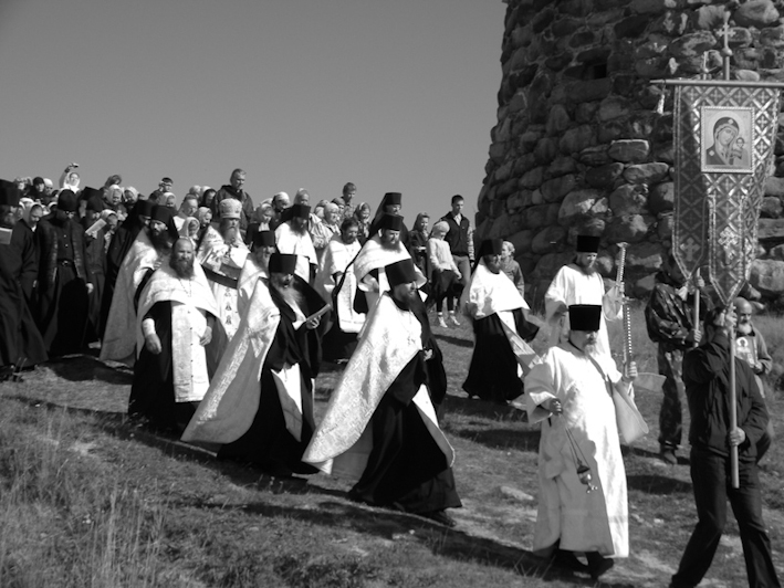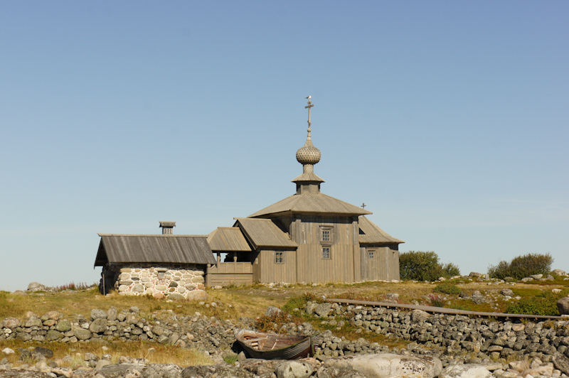В эти дни на Соловецких островах стояла прекрасная, редкая для этих суровых мест погода, позволившая нам путешествовать по скитам и островам архипелага. Побывали мы у стен Свято-Вознесенского скита на Секирной горе, в бывшем Сергиевом скиту на острове Муксалма, в Андреевском Скиту на Заяцком острове, в Макариевой пустыни.
