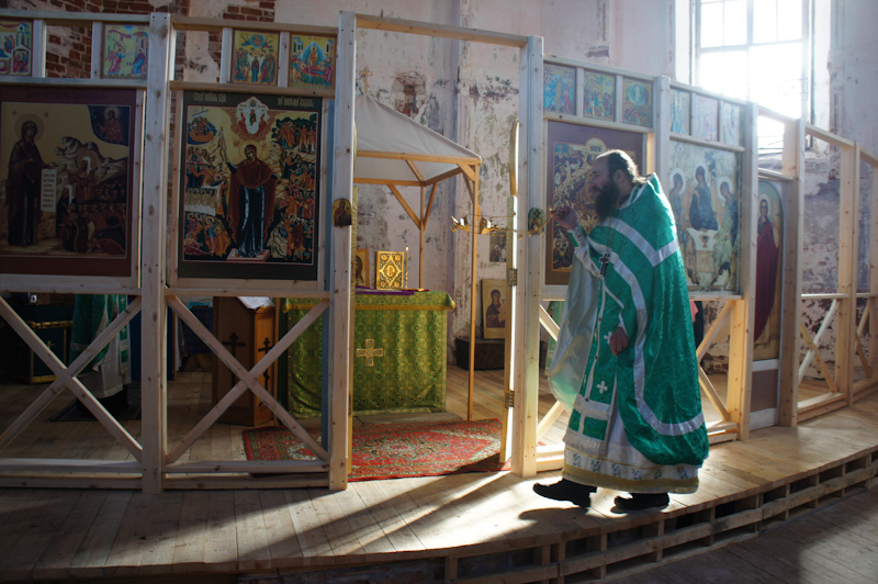 В день памяти Соловецких новомучеников и исповедников, 23 августа, мы поехали на остров Анзер, где в 1920-30-е годы располагались особые отделения СЛОНа - Соловецкого лагеря особого назначения. Остров Анзер печально известен как место сугубых мучений многих исповедников веры. В Троицком соборе Свято-Троицкого скита была совершена Божественная литургия, которую возглавил наместник Кемского подворья Соловецкого монастыря, игумен Симеон в сослужении протоиерея Николая Чернышева.