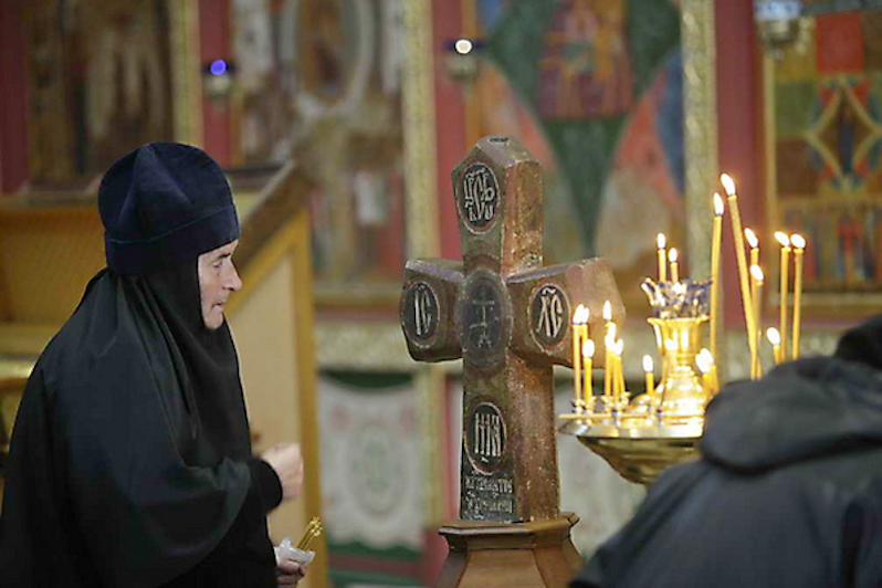 Затем наша группа совершила путь к Распято-Голгофскому скиту, где мы молились у места погребения новомучеников и других святынь острова.